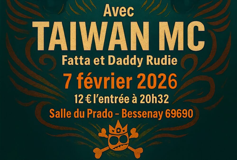 Soul Stereo Sound System s’installe à Bessenay pour une soirée reggae puissante avec Taiwan MC, Fatta et Daddy Rudie. Groove et vibrations garanties. Ouverture des portes à 20h32 (oui, c’est précis ).
