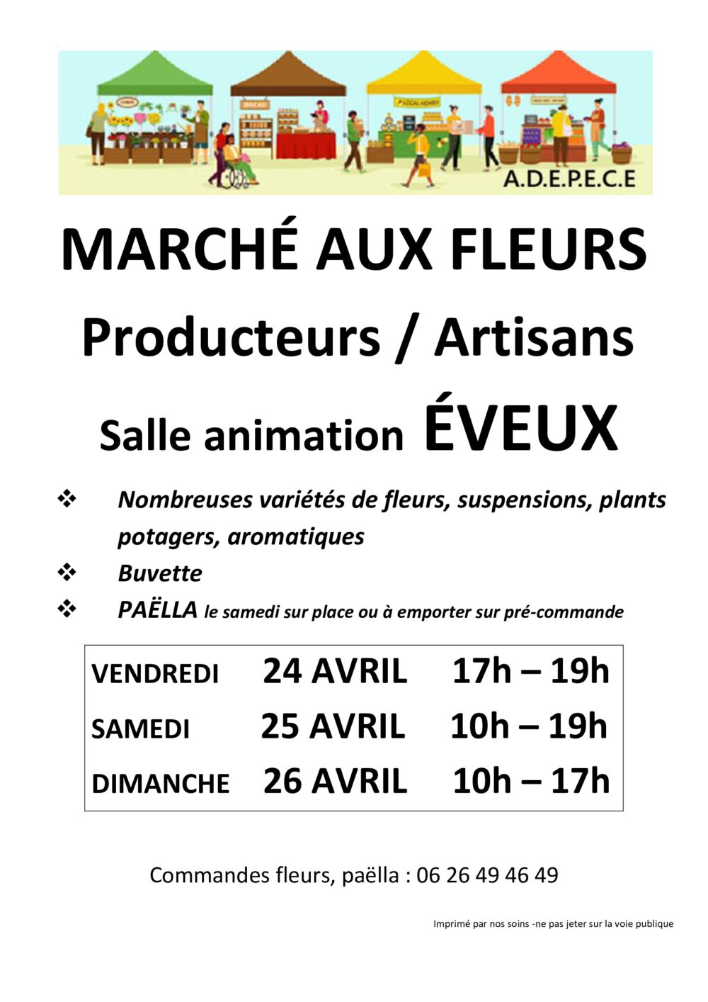 Marché aux fleurs, réunissant producteurs et artisans locaux, est organisé par l’ADEPECE (Association D’Expression Participative Environnementale Citoyenne Engagée).