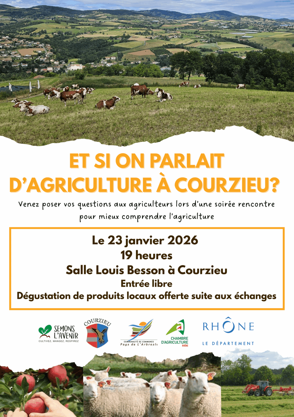 Après son report en septembre dernier, la soirée rencontre avec les agriculteurs de Courzieu est enfin confirmée !