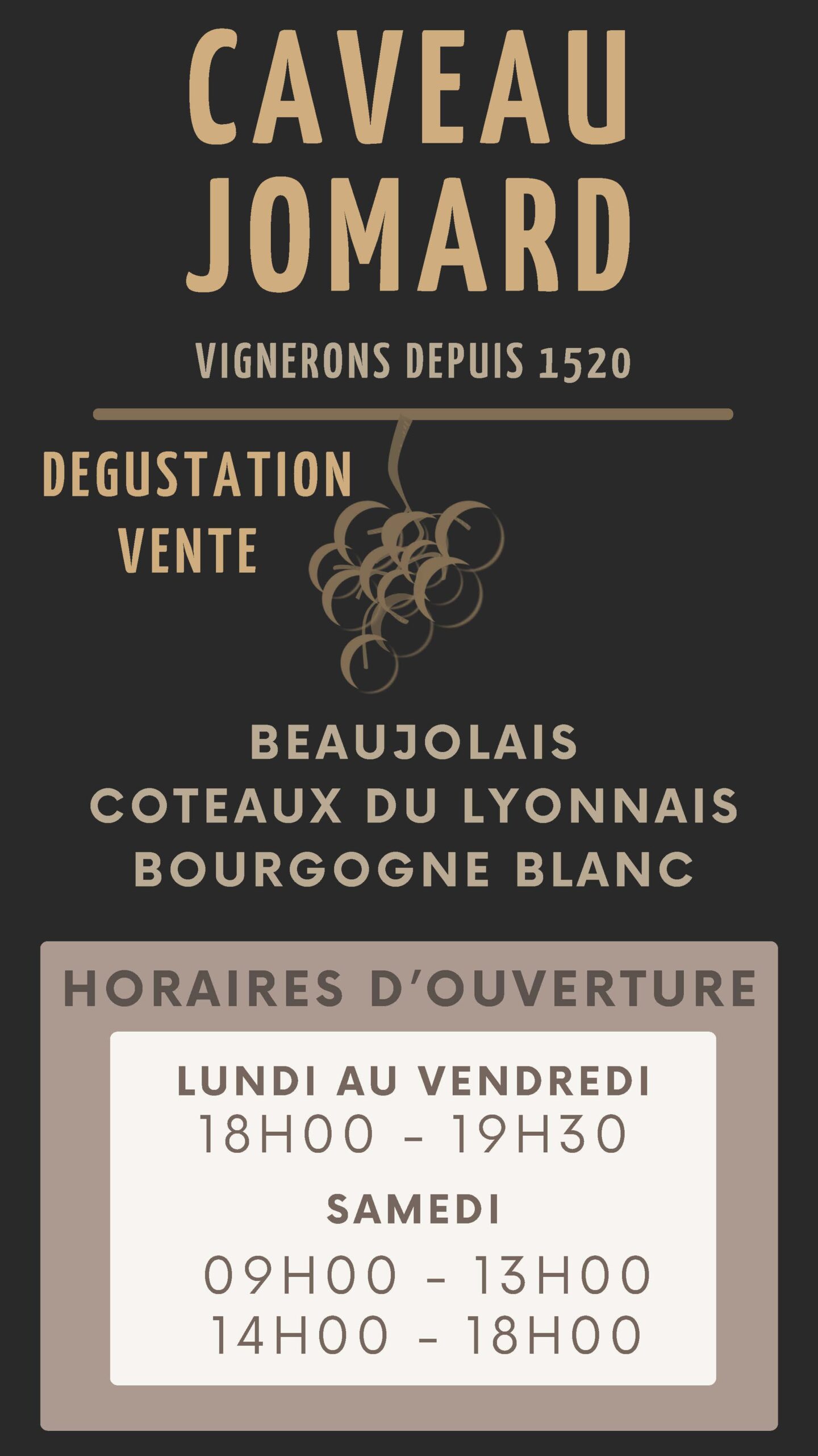 Pierre et Jean-Michel Jomard produisent et vendent en direct leurs vins du Beaujolais, Bourgogne blanc, Coteaux du Lyonnais (blanc, rouge, rosé), blanc perlé, rosé perlé, ainsi que leurs jus de raisin et poire. Eaux de vie (poire, cerise et mirabelle).