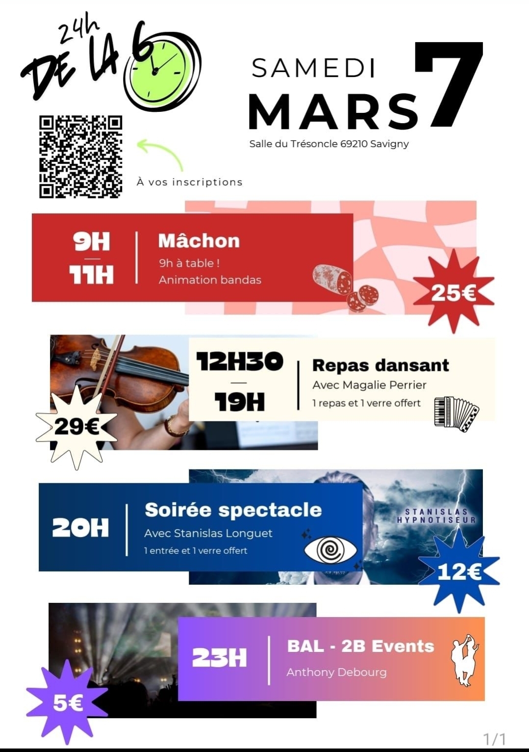 • Soirée hypnose avec Stanislas Longuet, puis DJ et bal avec 2B Events jusqu’au bout de la nuit.