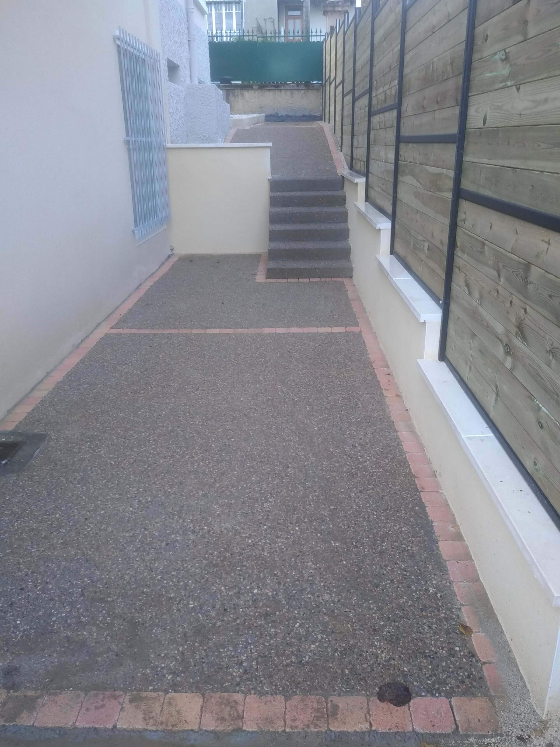 Concernant les aménagements extérieurs, nous intervenons principalement sur la création de dalle en béton armé, murs de clôture, pose de grillage souple ou rigide, murs de soutènement.