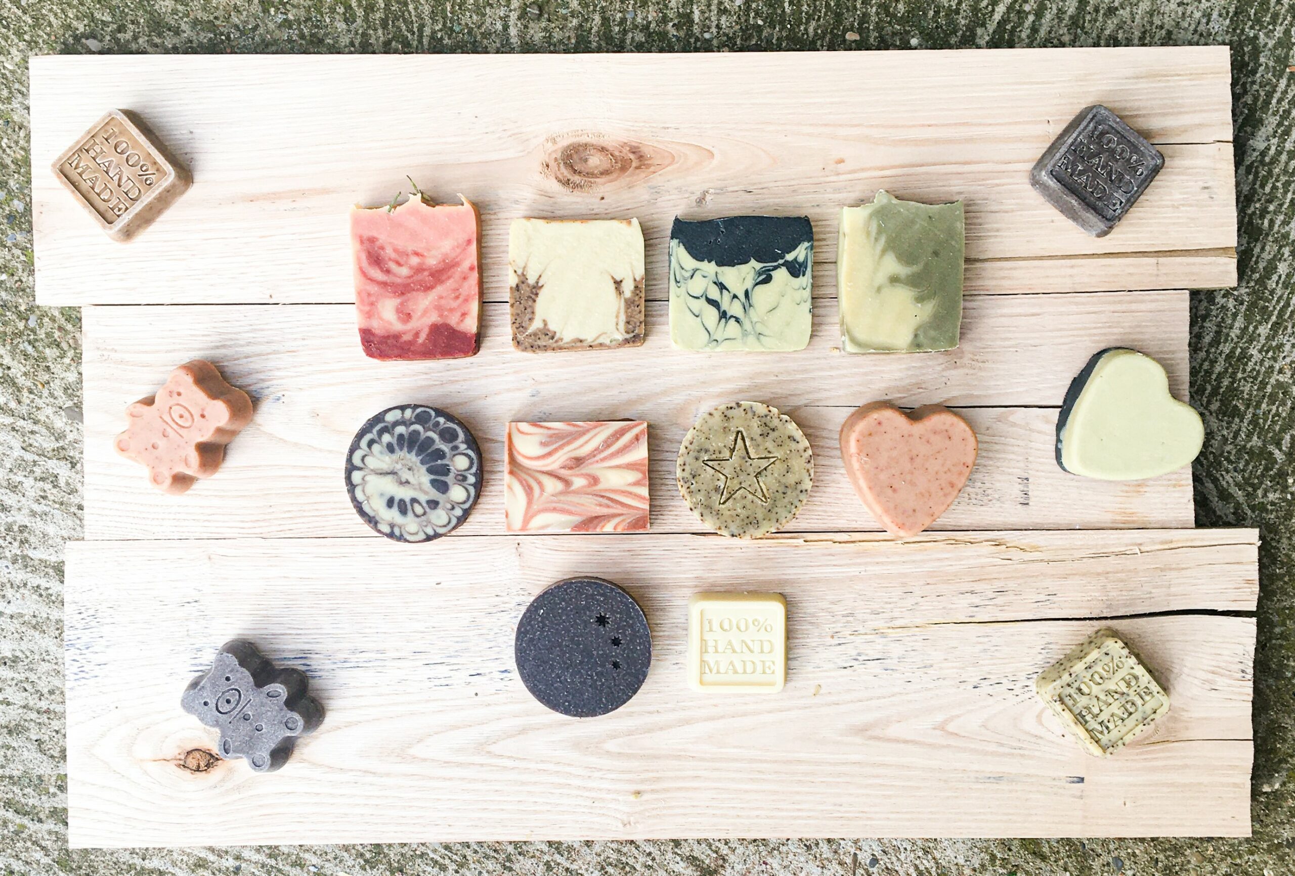 Ils sont colorés avec des argiles et des poudres de plantes, puis parfumés avec des huiles essentielles. Il n’y a ni parfums, ni colorants et encore moins de conservateurs. Les savons sont proposés sous plusieurs formes pour faire le bonheur des petits et des grands.