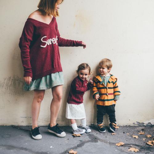Fabrication de vêtements maternité en maille et accessoires. Tissus peint à la main. Artisane créatrice de mode écoresponsable made in Lyon. Vêtements et accessoires pour enfant et femme.