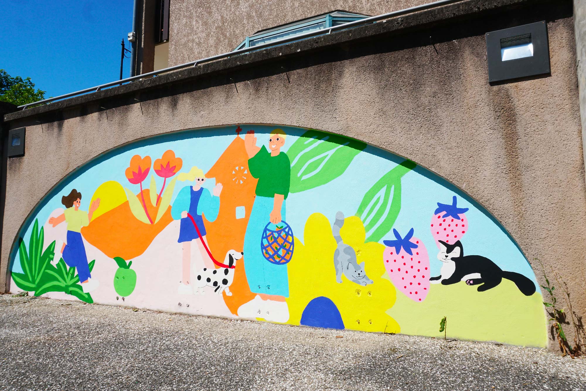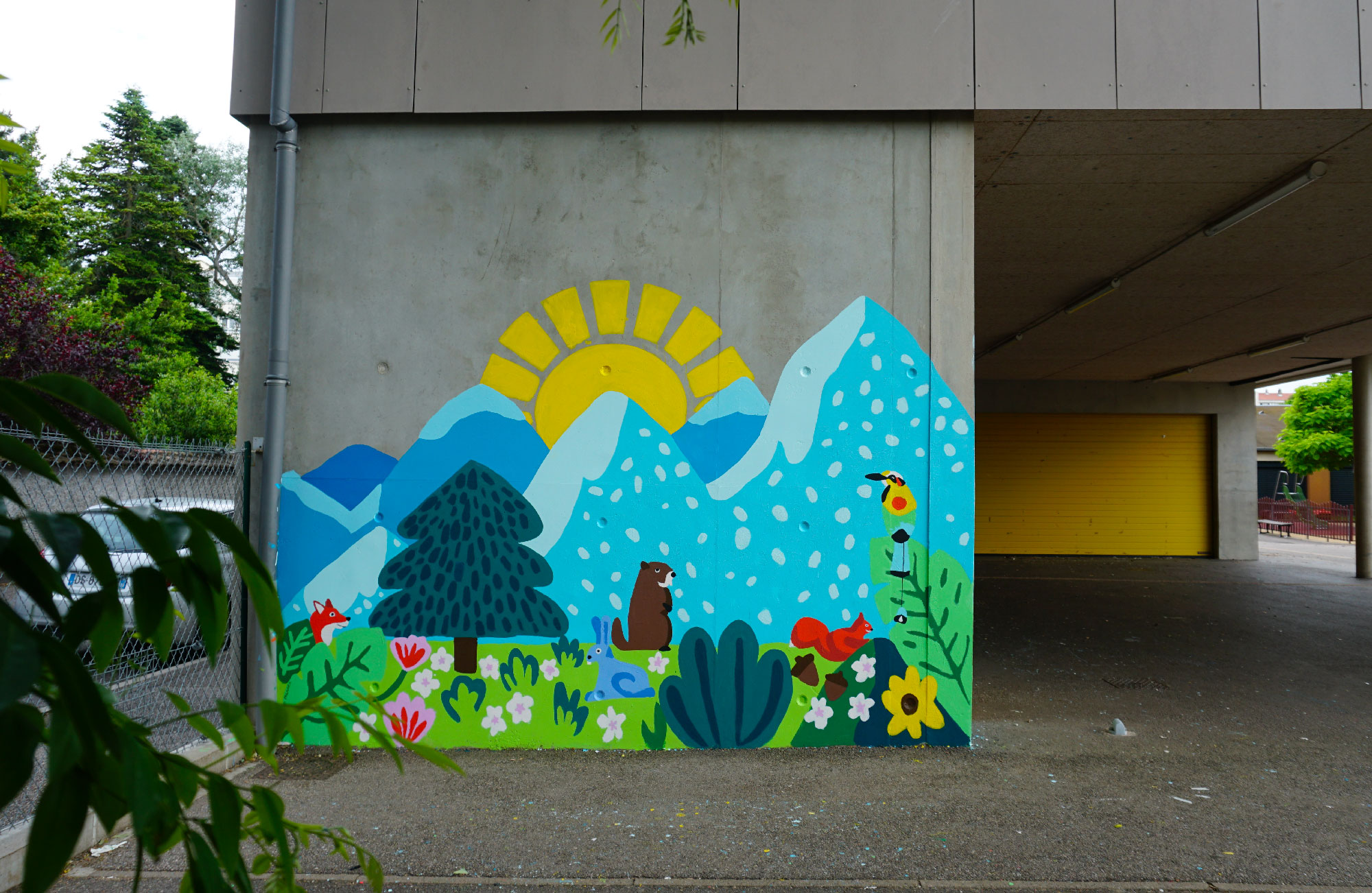 Je travaille aux côtés des collectivités, établissements scolaires et structures dédiées à la jeunesse pour imaginer et réaliser des fresques murales participatives.